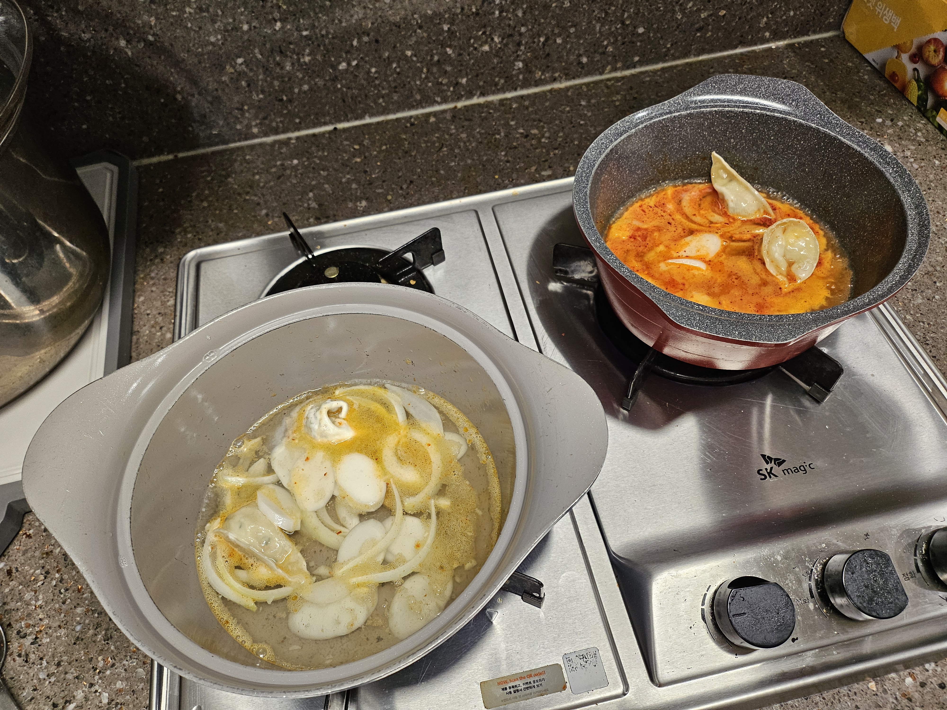 아이 아침 챙겨줄 겸 하얀 버전과, 제가 먹을 빨간 만두국 두 가지 버전으로 한 번 끓여봤어요